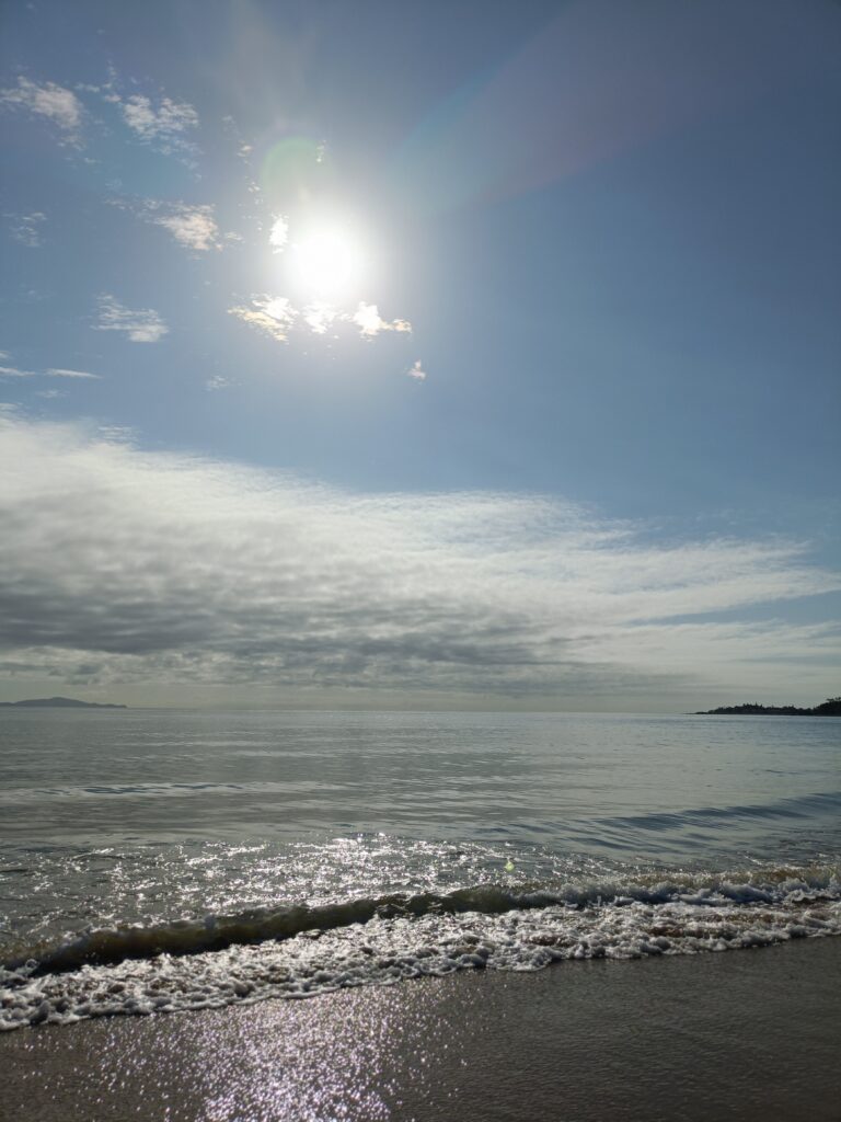 Before she knows the day has come to a close, leaving a satisfaction and a quietness within her soul. The serenity of the day bringing peace as she embarks on a beautiful night’s sleep. Then to awake and begin afresh, pondering on the writing of the previous day. The decision is made to head to the beach and sit awhile, embracing the beauty of the scene that lies in front. The ocean- the breeze, and the glimmer of the sun reflecting on the water, with an imagery of glass.
